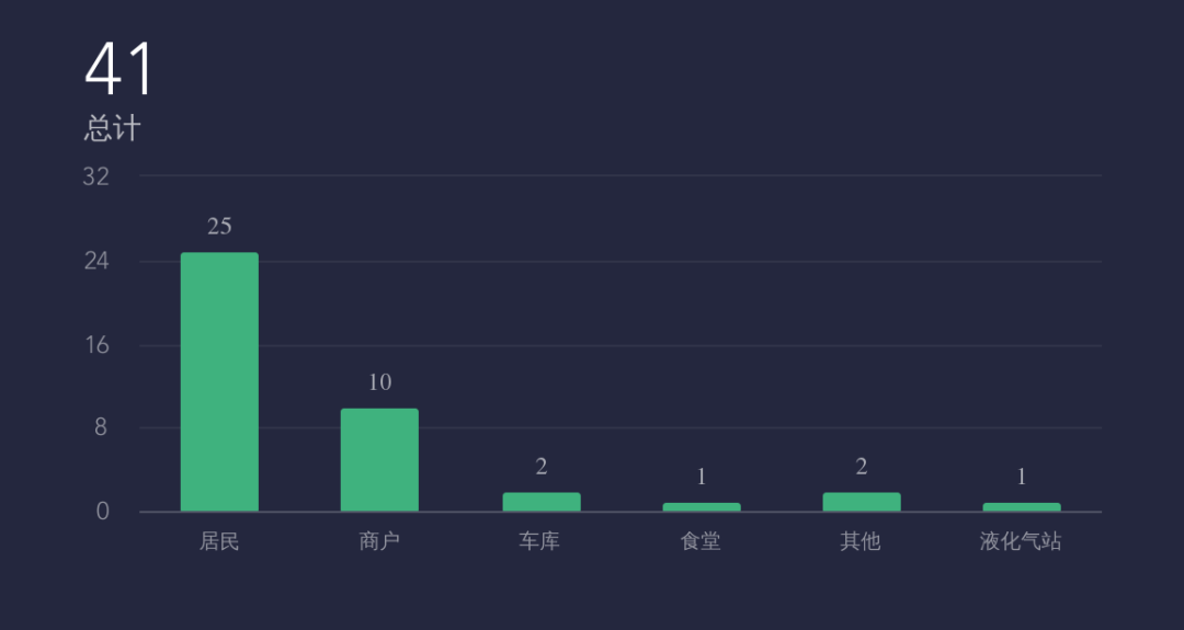 41起室内燃氣安全新聞中,10起發生在商戶,25起發生在民居🤞,民居✊占比61% 。此外改建車庫事故新聞數2起,食堂及液化氣站燃☁️氣事故新聞各1起。